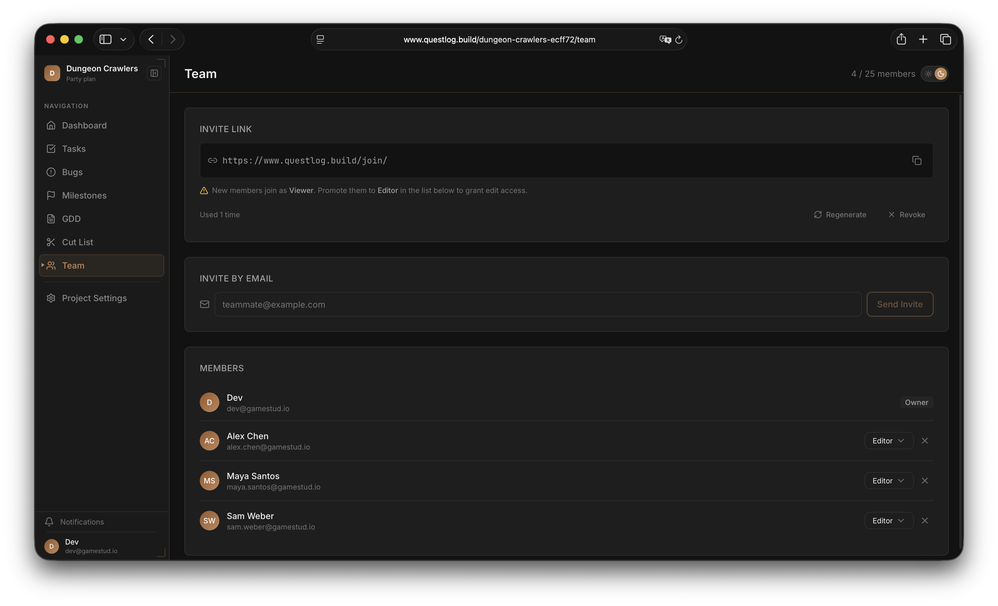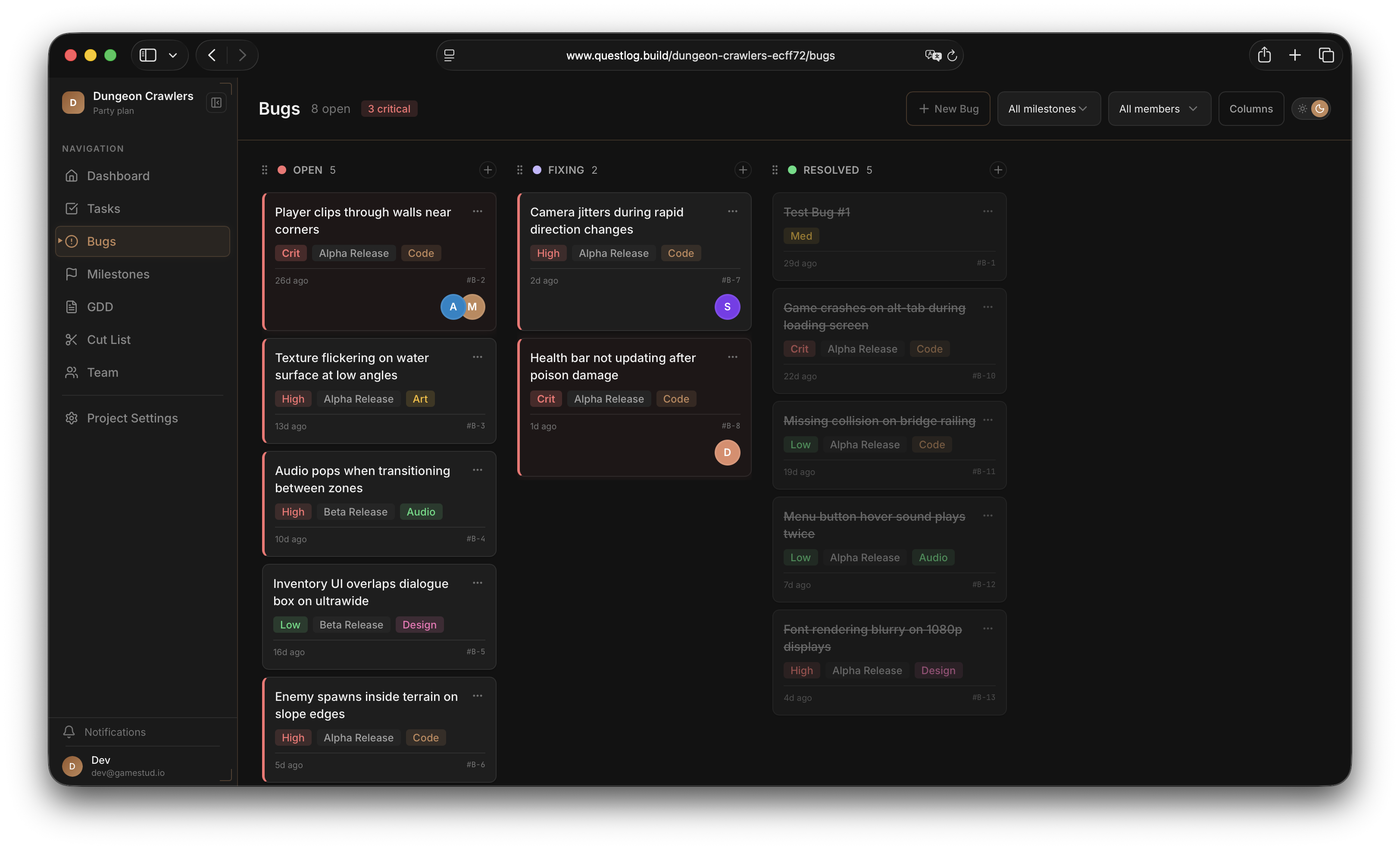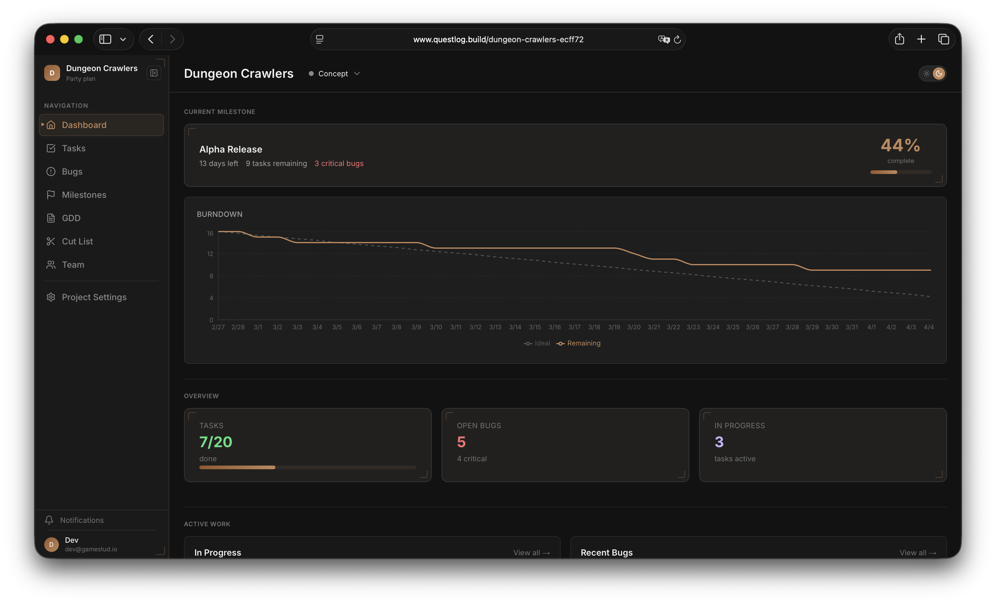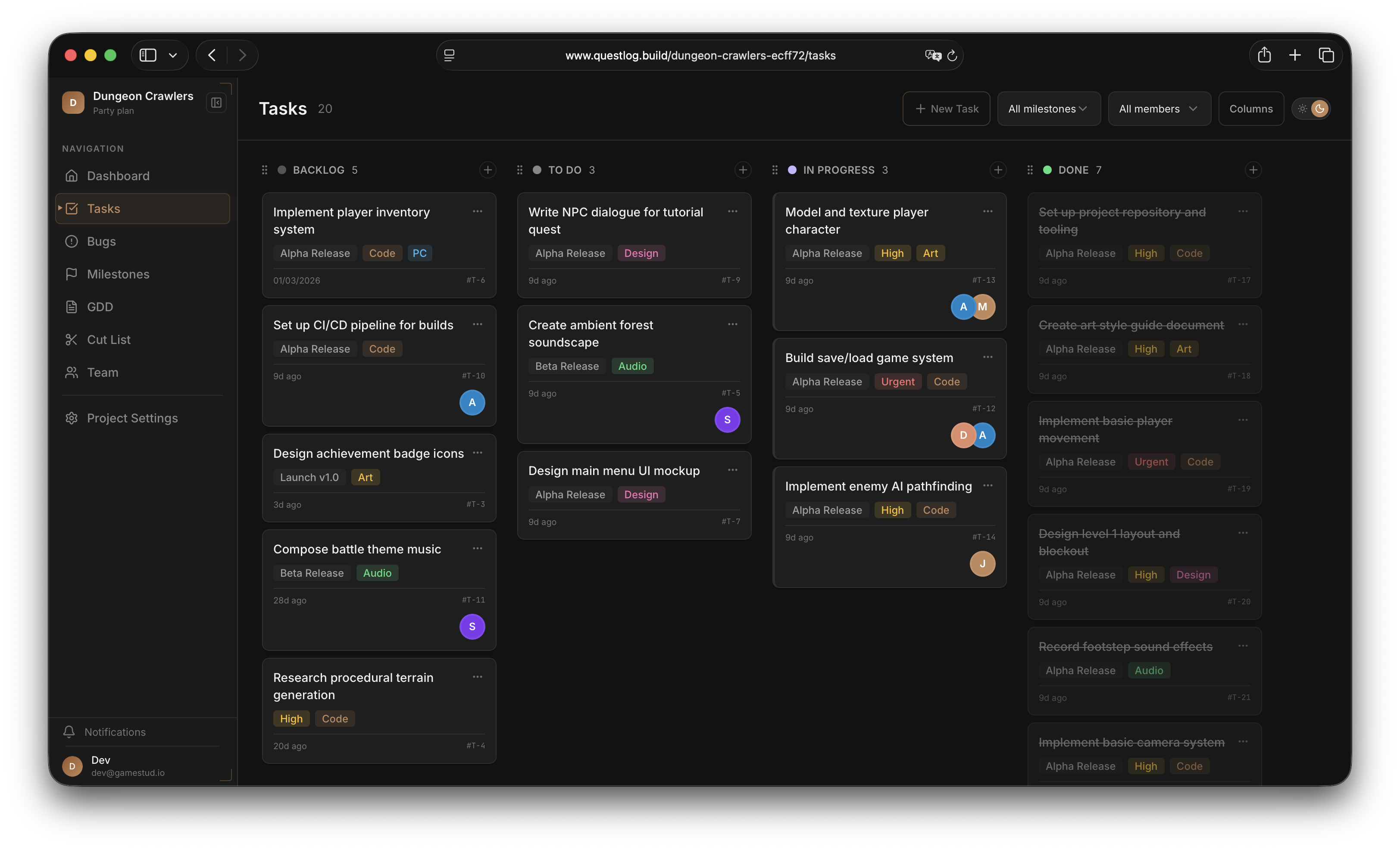 Hey! I'm Timo, and I built Questlog because I was tired of trying to make Notion or the like work for my game dev projects. They're fine tools, but can be pretty overwhelming from the start and I wanted something that just works out of the box.
