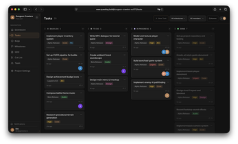 - - Task board with fields that are tailored for game development — area, target platform, priority